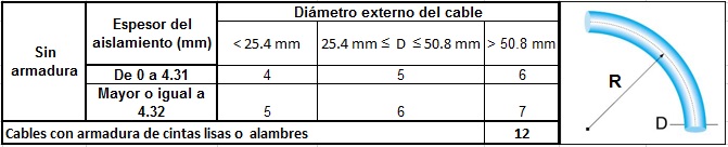 D: Diámetro sobre cubierta externa o sobre aislamiento (cuando no tiene cubierta externa) (mm)