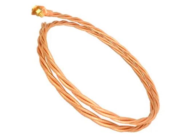 Electrodo de puesta a tierra conformado por 3 barras de cobre trenzados de 99.99% de pureza, cuenta con un conector integrado para fijar el conductor eléctrico, además los valores de resistencia de dispersión de las corrientes parásitas son 30% mayores con la tribarra de puesta a tierra que con una varilla de cobre
